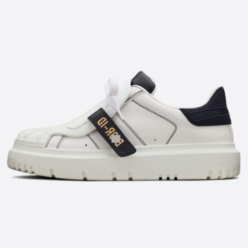 디올 ID 화이트 다크 블루 송아지 가죽 고무 운동화 KCK278BCR_S29W > ★ Sneakers