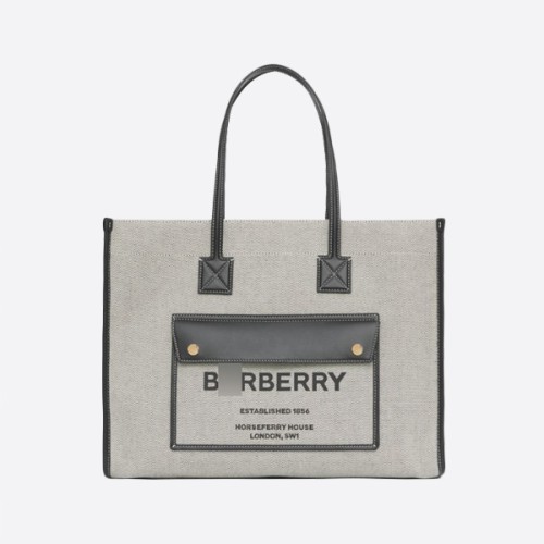 버버리 미디엄 투톤 캔버스 가죽 플레어 토트 칼라:블랙 80441281 > ★ Bags