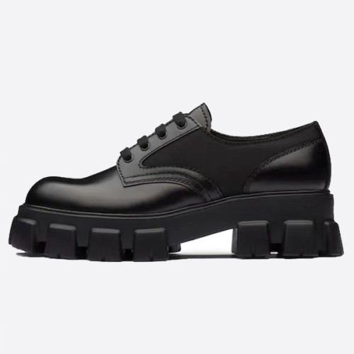 프라다 모노리스 브러쉬 서랍 가죽 x 나일론 레이스 업 신발 2EE342_3LFR_F0002 > ★ Leather shoes/boots