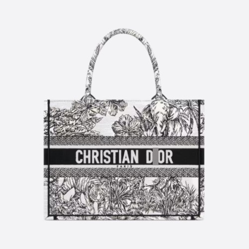 디올 북 토트 미디엄 백 화이트 & 블랙 트왈 드 주이 보야지 엠브로이더리 M1296ZEUP_M041 > ★ Bags