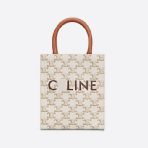 셀린느 미니 버티컬 카바스 - 트리옹프 캔버스 & 카프스킨 화이트 194372BZK.01BC > ★ Bags
