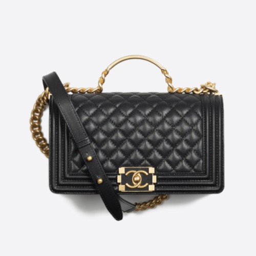 샤넬 보이 플랩백 핸들 글로시 그레인드 카프스킨, 골드 메탈 블랙 A94804 B13694 94305 > ★ Bags