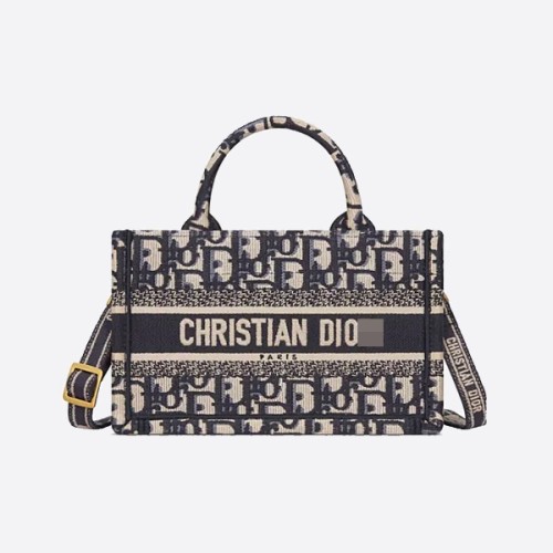 디올 미니 북 토트 스트랩 블루 & 베이지 디올 오블리크 엠브로이더리 S5573CRIW_M928 > ☆ Bags