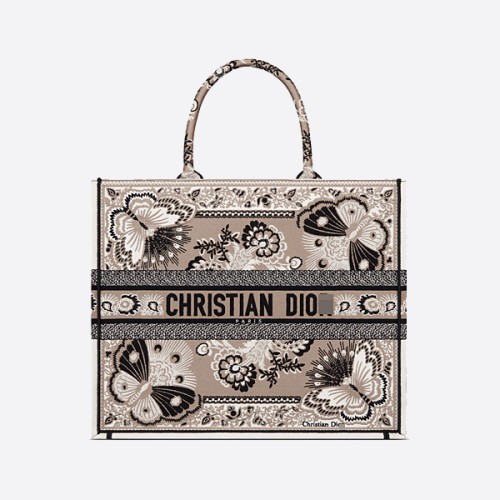 디올 라지 북 토트 베이지 멀티컬러 버터플라이 반다나 엠브로이더리 刺繍 M1286ZESE_M918 > ☆ Bags