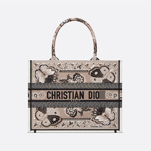 디올 미디엄 북 토트 베이지 멀티컬러 버터플라이 반다나 엠브로이더리 M1296ZESE_M918 > ☆ Bags