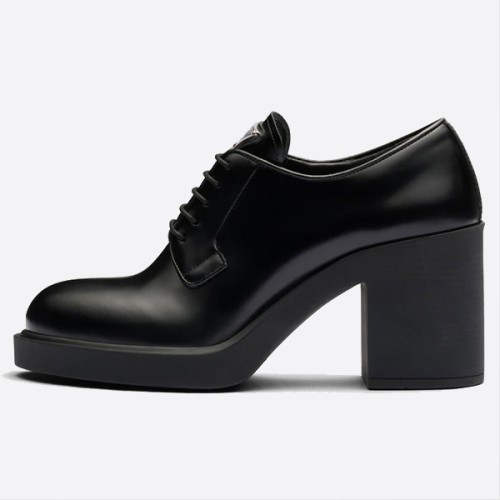 프라다 레이스업 85mm 힐스 블랙 브러시드 레더 1E976M_055_F0002_F_085 > ★ Leather shoes/boots