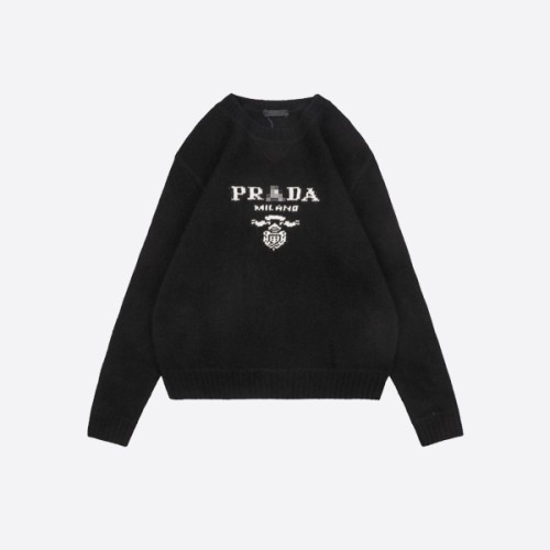 프라다 인타르시아 로고 니트 크루 넥 스웨터 블랙 > ★ Top
