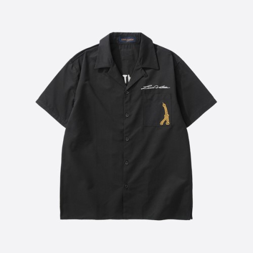 루이비통 오픈 컬러 쇼트 슬리브 코튼 셔츠 블랙 > ★ Top