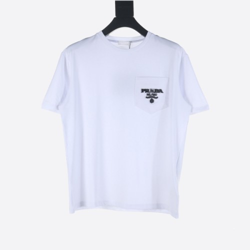 프라다 셔닐 로고 패치 티셔츠 화이트 > ★ Top