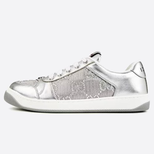 구찌 스크리너 GG 스니커즈 메탈릭 실버 레더 777271 AAC08 8147 > ★ Sneakers