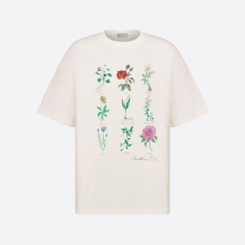 디올 티셔츠 화이트 슬럽 코튼 저지 > ★ Top