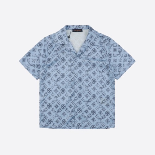 루이비통 모노그램 실크 쇼트 슬리브 셔츠 블루 > ★ Top