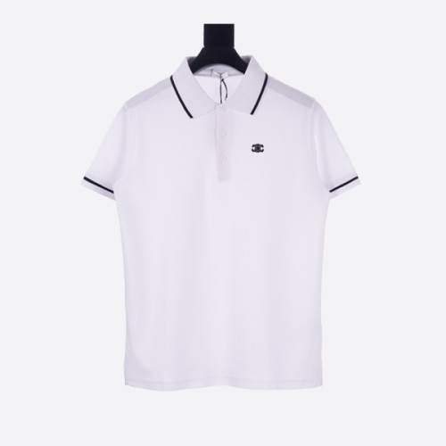 셀린느 옴므 로고 엠브로이더리 코튼 피케 폴로 셔츠 화이트 > ★ Top