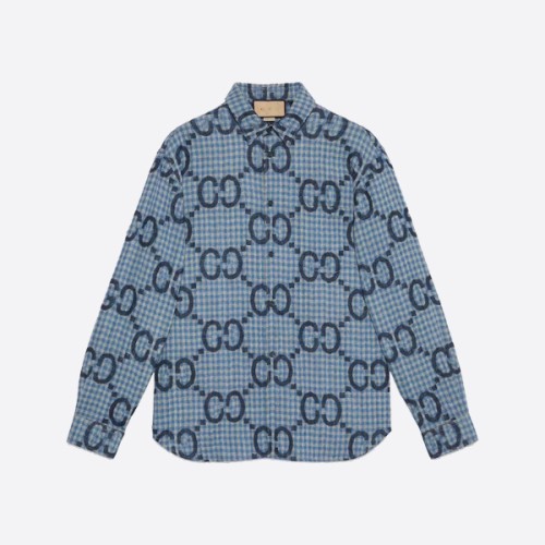 구찌 점보 GG 체크 울 셔츠 라이트 블루 & 블루 > ★ Top