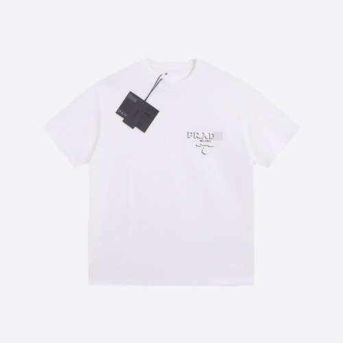 프라다 로고 엠보시드 코튼 티셔츠 화이트 > ★ Top