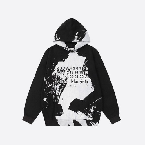 메종 마르지엘라 잉크 스플래쉬 로고 후드 블랙 > ★ Top