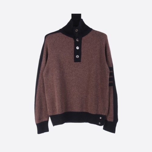 톰 브라운 컬러 블락 울 라펫 스웨터 마호가니 & 블랙 > ★ Top
