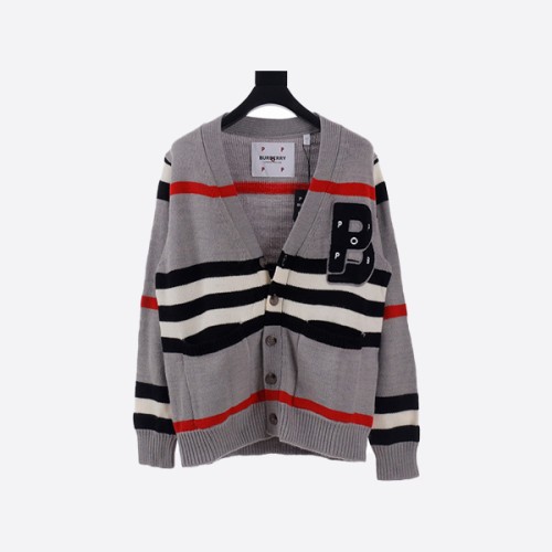 버버리 22FW 조인트 인타르시아 그레이 스트라이프 울 가디건 > ★ Top