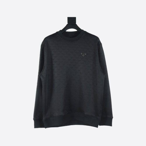 프라다 옵스큐어 자카드 트라이앵글 레더 패치 라운드넥 스웨트셔츠 > ★ Top