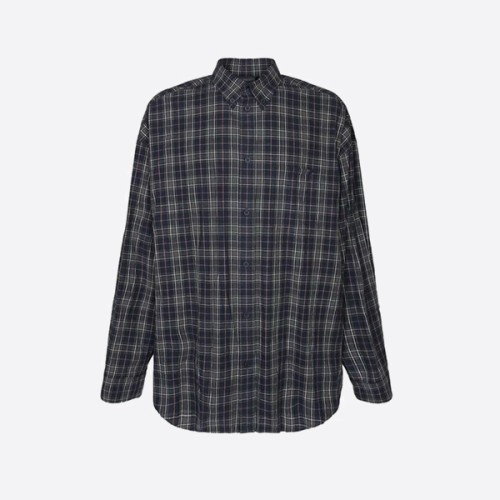 발렌시아가 라지 핏 체크 셔츠 네이비 > ★ Top