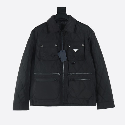프라다 체스트 스퀘어 라지 포켓 더블 지퍼 씬 코튼 자켓 > ★ Outer