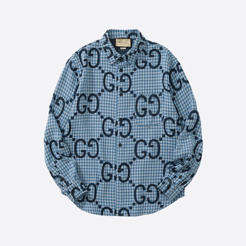 구찌 점보 GG 체크 울 셔츠 블루 > ★ Top