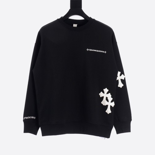 크롬하츠 24Fw 레더 라벨 크로스 패치 자수 크로넥 스웨트셔츠 블랙 > ★ Top