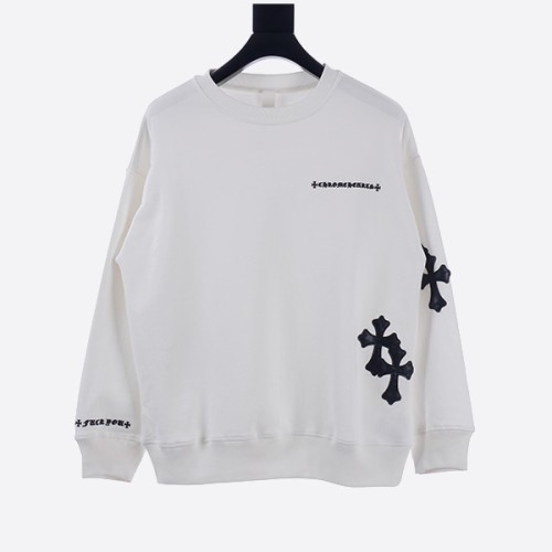 크롬하츠 24Fw 레더 라벨 크로스 패치 자수 크로넥 스웨트셔츠 화이트 > ★ Top