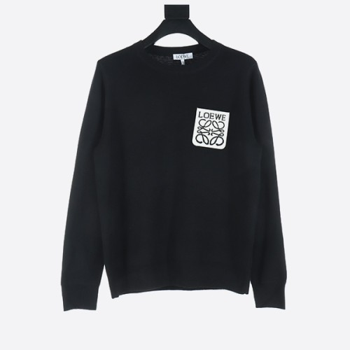 로에베 자카드 우븐 포켓 라운드 넥 스웨터 블랙 > ★ Top