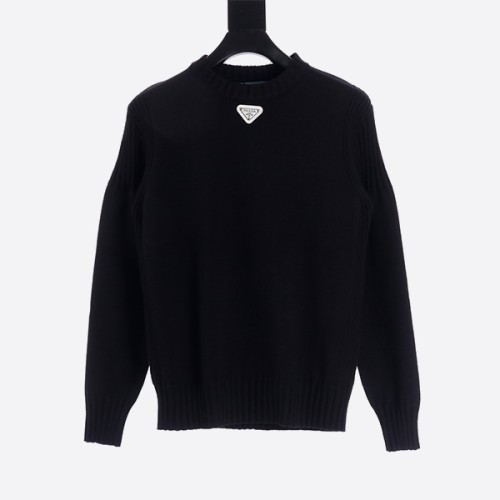 프라다 24FW 인버티드 트라이앵글 니트 크루넥 스웨터 블랙 > ★ Top