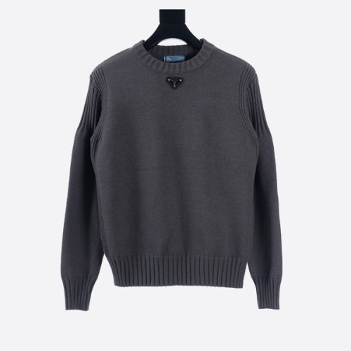 프라다 24FW 인버티드 트라이앵글 니트 크루넥 스웨터 그레이 > ★ Top