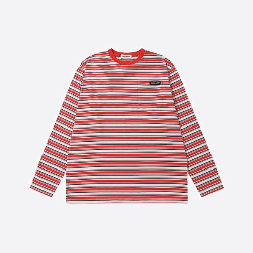 미우미우 롱슬리브 코튼 저지 티셔츠 레드 > ★ Top