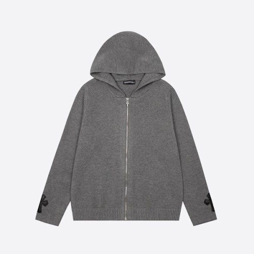 크롬하츠 암 레더 크로스 니트 집업 가디건 그레이 > ★ Outer