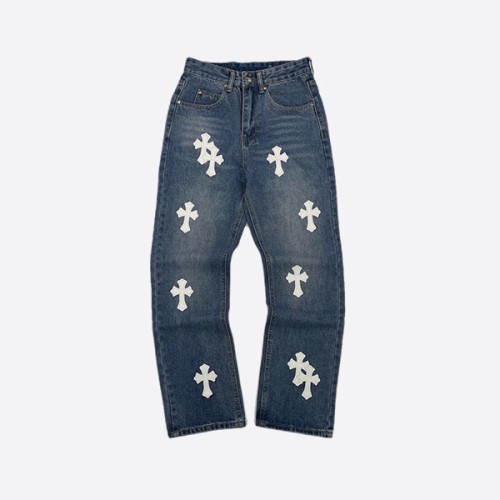 크롬하츠 크로스 데님 팬츠 블루 화이트 > ★ Pants
