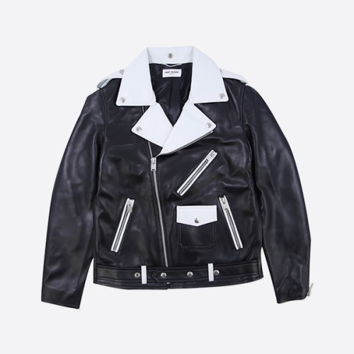 생 로랑 투톤 카프 레더 더블 라이더 자켓 > ★ Outer