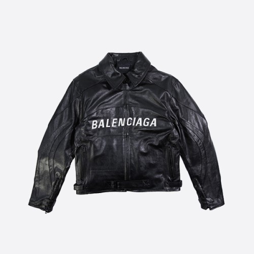 발렌시아가 콘트라스트 로고 레더 모토 자켓 블랙 > ★ Outer