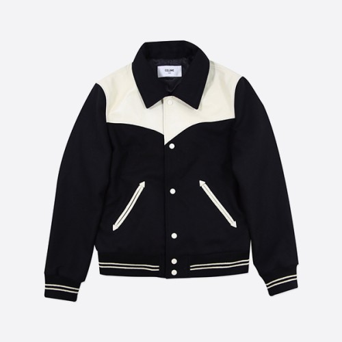 셀린느 잭 테디 레더 트리밍 울 블렌드 바시티 자켓 > ★ Outer