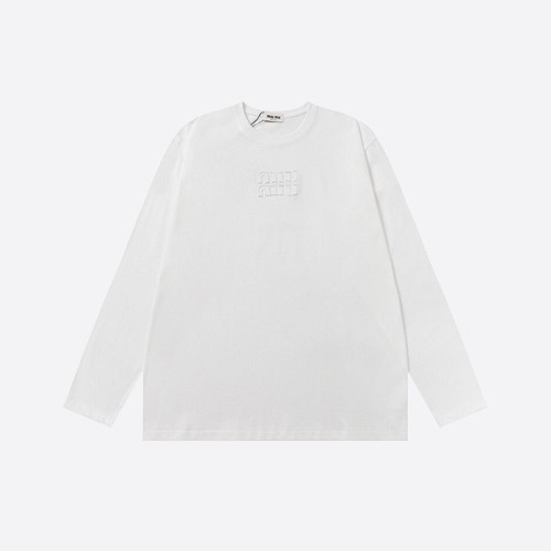 미우미우 자수 로고 코튼 티셔츠 화이트 > ★ Top
