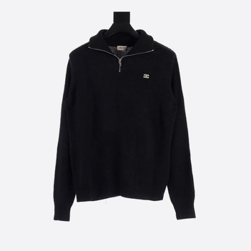 셀린느 트리옹프 자수 하프 집 스웨터 블랙 > ★ Top