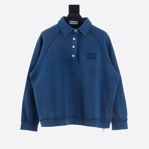 미우미우 로고 패치 폴로 스웨트셔츠 블루 > ★ Top