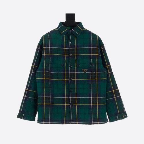 프라다 트라이앵글 로고 플래드 셔츠 그린 > ★ Outer