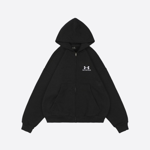 발렌시아가 언더 아머® 집업 후디 레귤러 핏 블랙/화이트 > ★ Outer
