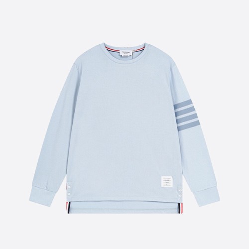톰 브라운 라이트 블루 코튼 저지 롱 슬리브 토널 4-바 럭비 티셔츠 > ★ Top