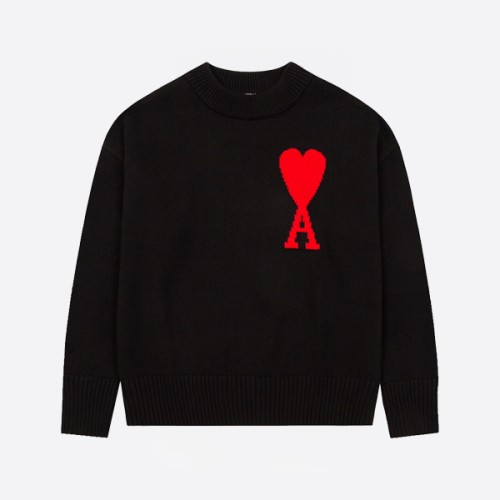 아미 파리스 빅 하트 니트 크루 스웨터 블랙/레드 > ★ Top
