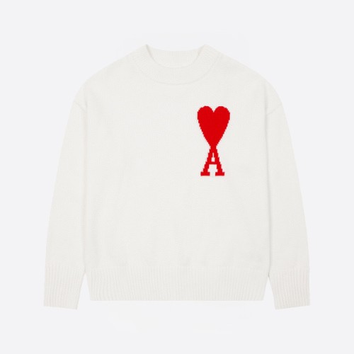 아미 파리스 빅 하트 니트 크루 스웨터 화이트/레드 > ★ Top