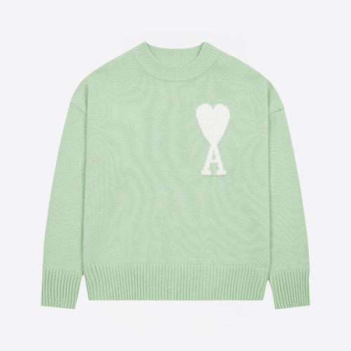 아미 파리스 빅 하트 니트 크루 스웨터 그린/화이트 > ★ Top