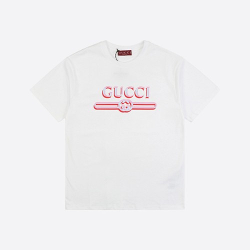 레플 구찌 핑크 블루 화이트 프린트 코튼 저지 티셔츠 화이트 레플리카 > ★ Top