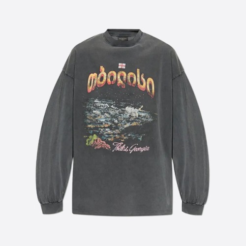 레플 발렌시아가 트빌리시 롱슬리브 티셔츠 라지핏 블랙 페이드 레플리카 > ★ Top