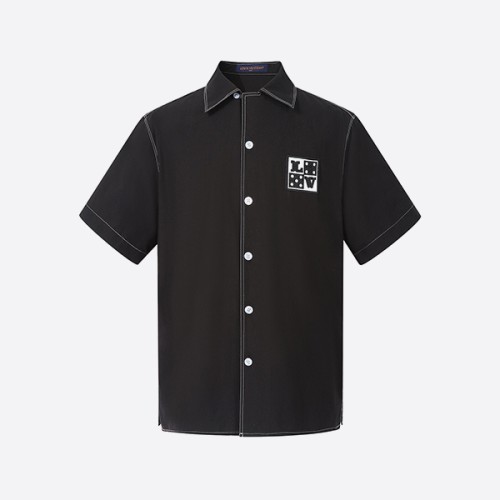 레플 루이비통 엠브로이더리 쇼트 슬리브 코튼 셔츠 블랙 레플리카 > ★ Top