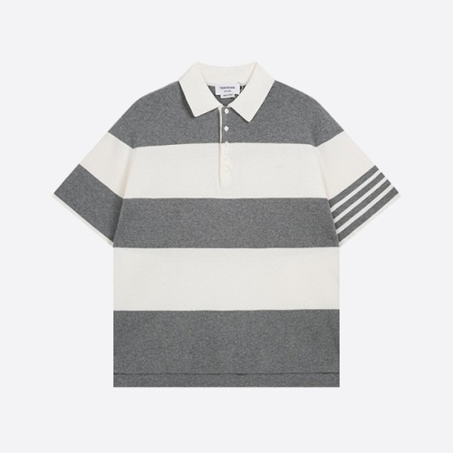 레플 톰 브라운 그레이 코튼 럭비 스트라이프 쇼트 슬리브 폴로 레플리카 > ★ Top